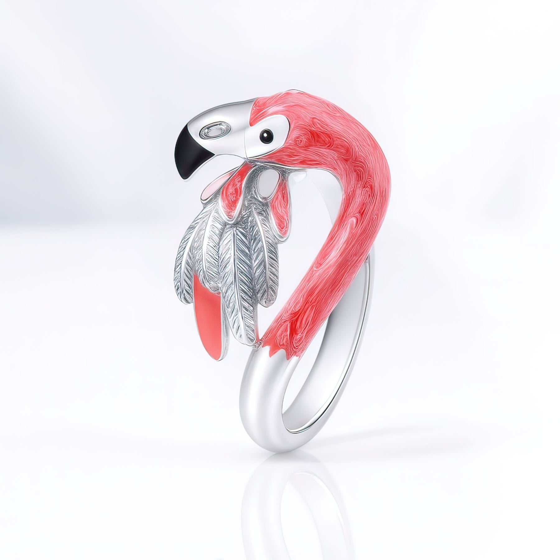 Flamingo ringGold flamingo ringFlamingo-shaped ring with pink and silver design on a white background